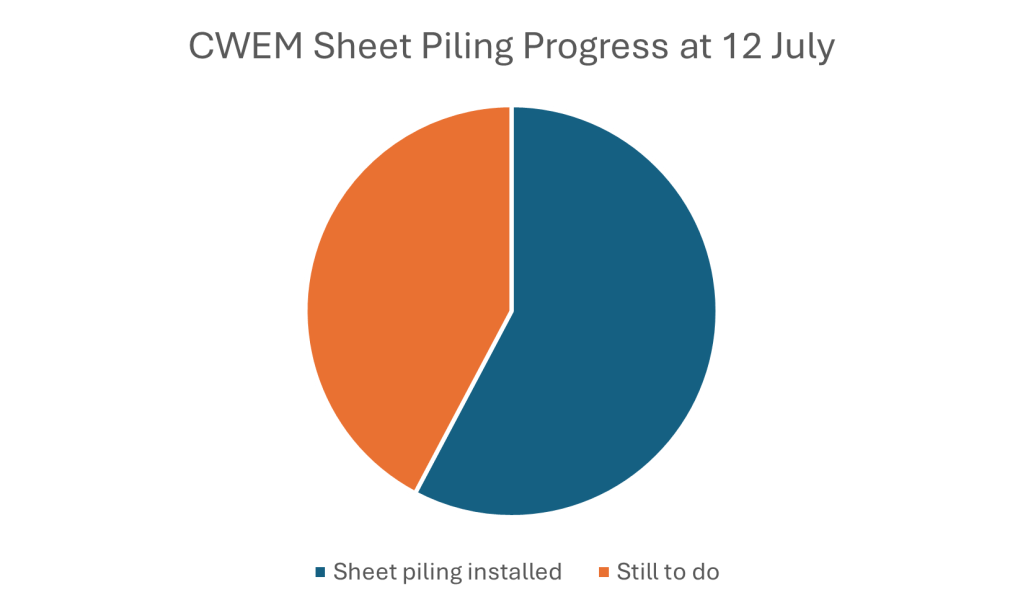 The sheet piling along the Hamilton Street boundary was completed earlier this week with our contractors now starting to move back into the middle of the site. All going well, we will be moving on to the last section of sheet piling at the western end of the site mid-next week.