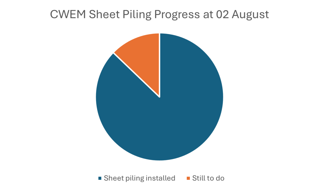 The sheet piling at the western end of the site (nearer to Durham Street) has progressed this week with contractors expecting to finish this section by the end of the day. Next week the team moves back to the centre of the site to complete the sheet piling works. Providing the ground conditions remain the same, the sheet piling is expected to be completed during the week commencing 12 August. We will continue to keep you updated on progress next week.